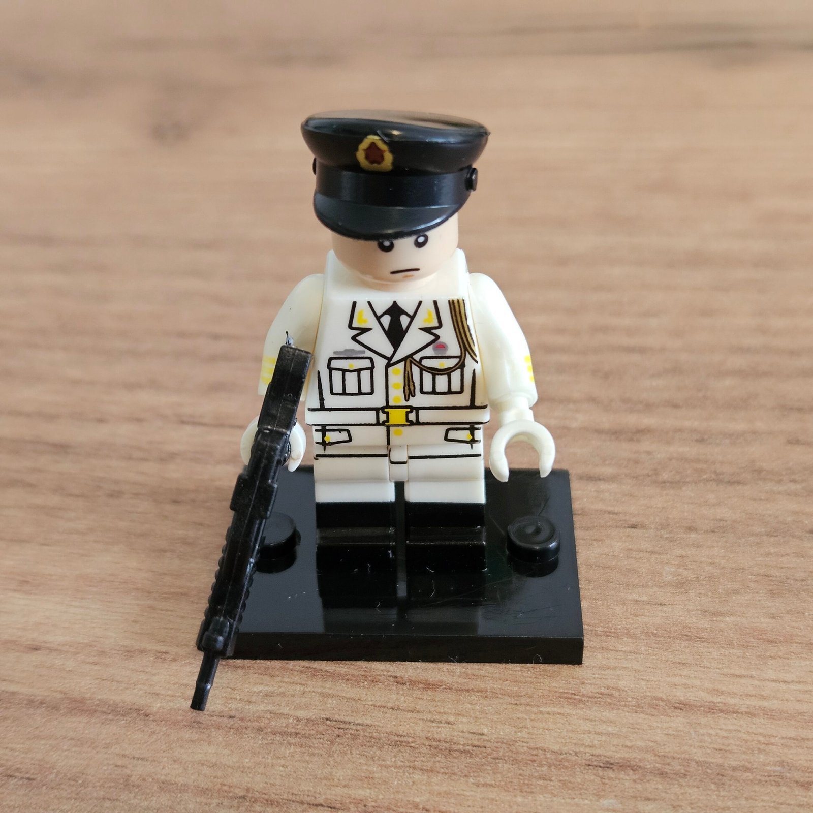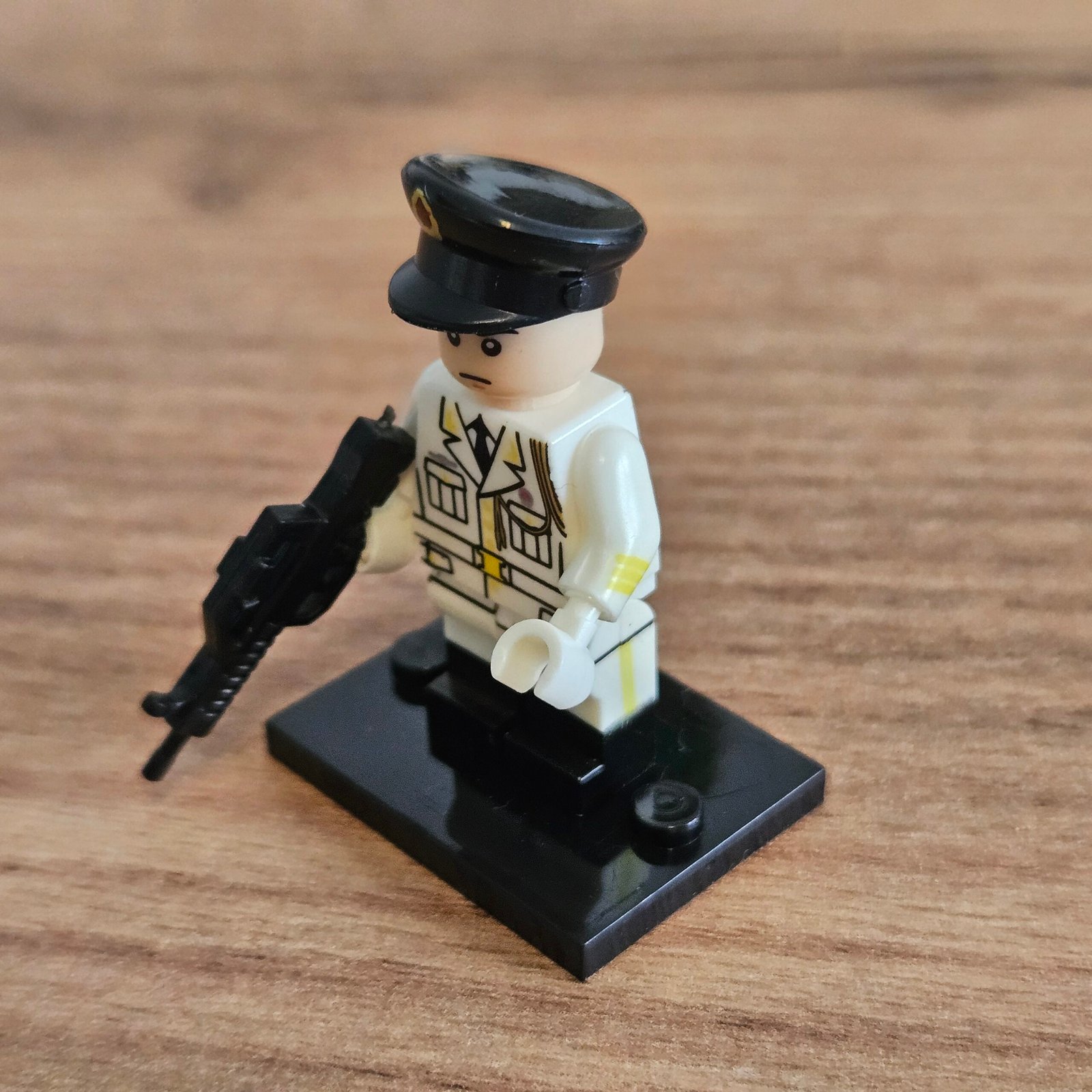 Bardzo fajna, customowa minifigurka przedstawiająca współczesnego marynarza Chińskiej Marynarki Wojennej Ludowo-Wyzwoleńczej (PLAN), zaprojektowana dla kolekcjonerów, twórców makiet militarnych i graczy bitewnych.
